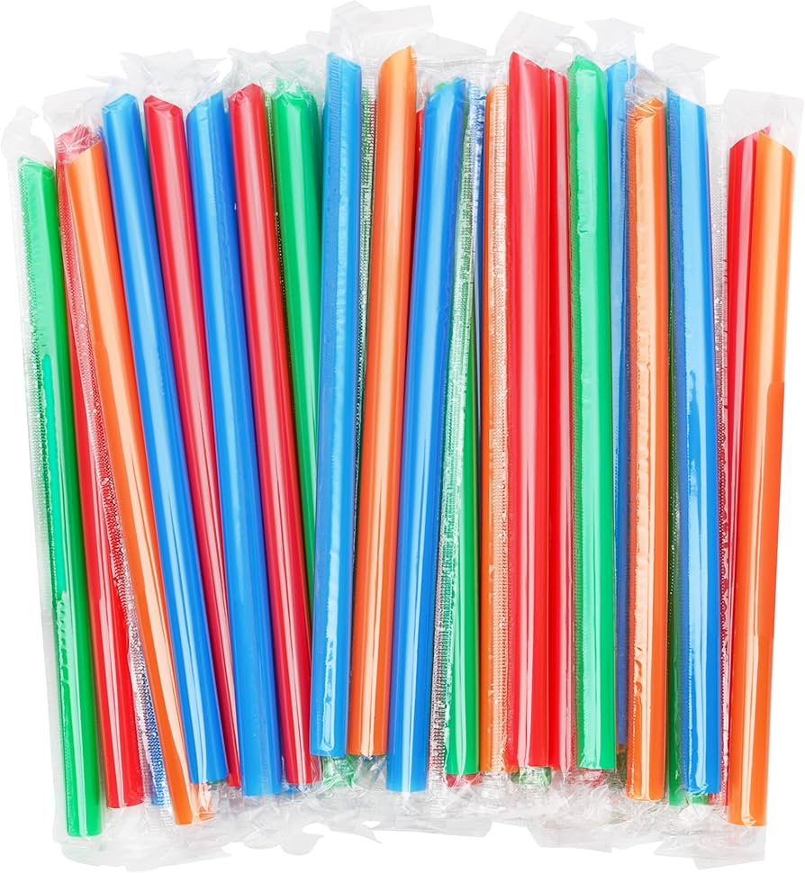 Serve your slushies, smoothies, or boba drinks the right way with these jumbo-sized bubble tea straws. Designed for thick drinks and bursting boba, each straw is extra wide, colorful, and individually wrapped for convenience and cleanliness.